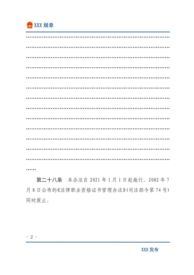 一、规章制定或修改时,按照《规章制定程序条例》规定,由主要负责人签署命令予以公布。规章集中公开时,只公开标题、题注和正文,不重复公开负责人签署的命令。题注应当包含公布时间及文号、修订时间及文号、施行时间等标识性信息,具体请参照中国政府法制信息网(司法部网站)“行政法规库”的题注格式。