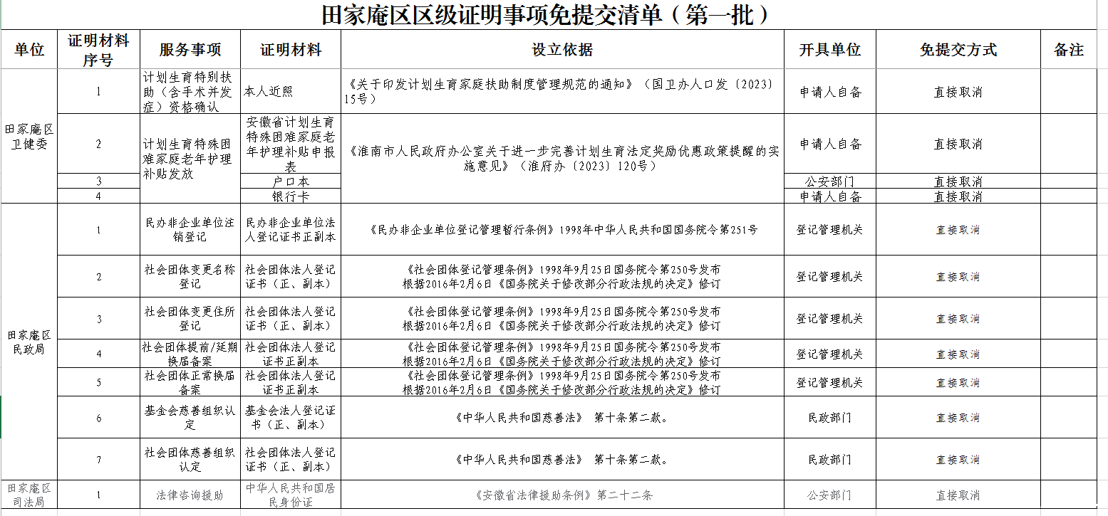1附件:《田家庵区区级证明事项免提交清单(第一批)》 (1).xlsx