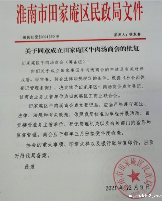 田家庵区宋氏牛肉汤店;执照号码:92340400MA2PKELL6M;许可证号:JY23404030025877;负责人:宋中民。本店位于:田家庵区汇景豪庭A1栋东侧106号网点,经营面积:300m²。年营业额达到:350万元。商标及获得相关荣誉“宋记牛肉汤” 诚信经营单位,1056年历史文化2013年入选非物质文化遗产项目传承单位,安徽金牌小吃,淮南牛肉汤商会会员单位,市级非物质文化遗产。