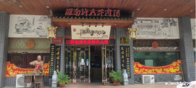 田家庵区淮畔阡陌牛肉汤馆,执照号码:92340403MA2U46GE24;许可证号:JY23404030066599;负责人:朱磊磊。本馆位于:安徽省淮南市田家庵区惠利大道东侧银鹭山庄组团二5栋107。,经营面积:600m²。年营业额达到:360万元。商标及获得相关荣誉“笨牛哥” 诚信经营单位,1056年历史文化2013年入选非物质文化遗产项目传承单位,安徽金牌小吃,淮南牛肉汤商会会员单位,市级非物质文化遗产。截至目前淮南市3家分店。