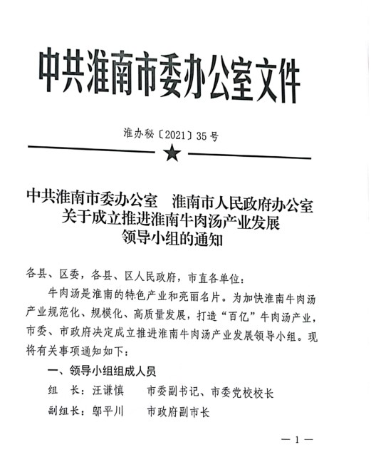 推进田家庵区淮南牛肉汤改革创新,以政府为推进主体,同时还包括重点园区、代表性生产企业以及重点门店。