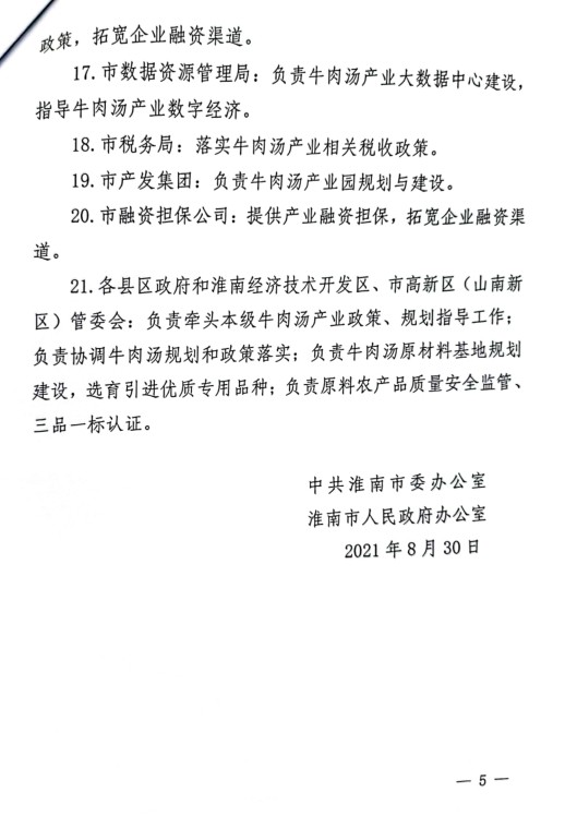 由区财政统筹,在已有支持淮南牛肉汤产业有关资金基础上,进一步优化调整,统筹调整为“淮南牛肉汤产业专项资金”,重点用于示范门店奖补、重点活动开展、重大事项推进等方面经费支出,以更实的举措引导产业改革创新。