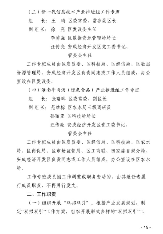 加大淮南牛肉汤产业招商引资力度,由区级层面设立淮南牛肉汤产业招商引资小组,挂靠在区招商局,招商小组组长由区长亲自担任,副组长由区招商局局长担任。定期赴省内外开展重点项目的招商引资,增强产业发展后劲。