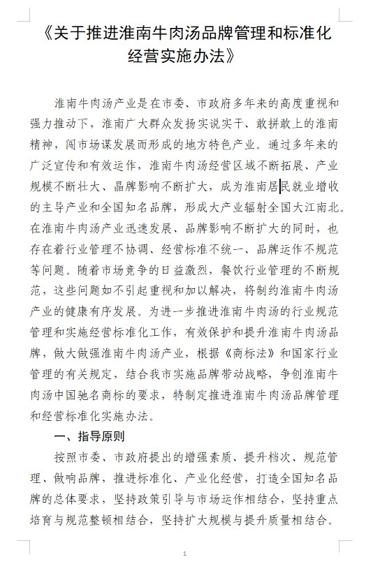 9.淮南牛肉汤品牌管理和标准化经营实施办法
