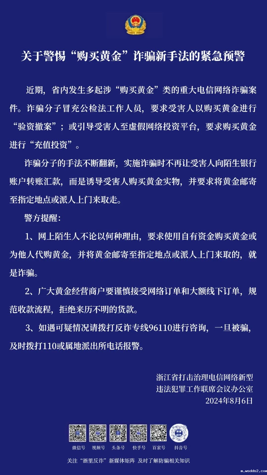 不止杭州上城近段时间浙江省内已发生多起涉“购买黄金”类重大电信网络诈骗案
