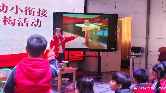 首先是大班科学《能干的桌子》。活动中,李婉老师为使各个教学环节充满趣味,恰当运用直观手段、生动形象的语言引起幼儿浓厚的学习兴趣,通过折叠、卷曲等方式制作纸桌,探索纸桌承重的科学现象,使幼儿始终处于愉快的气氛中。