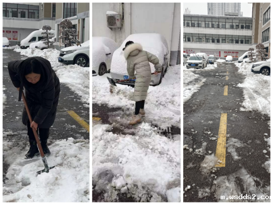 三组人员同时推进,利用铁锨、扫把等工具,对路段两侧路面、农户大棚进行除雪、除冰工作。经过几个小时的努力,成功清理出办公楼到大礼堂主干道路面以及湖滨路商户人行路面,并帮助维强家庭农场做好大棚除雪加温等一系列安全工作。