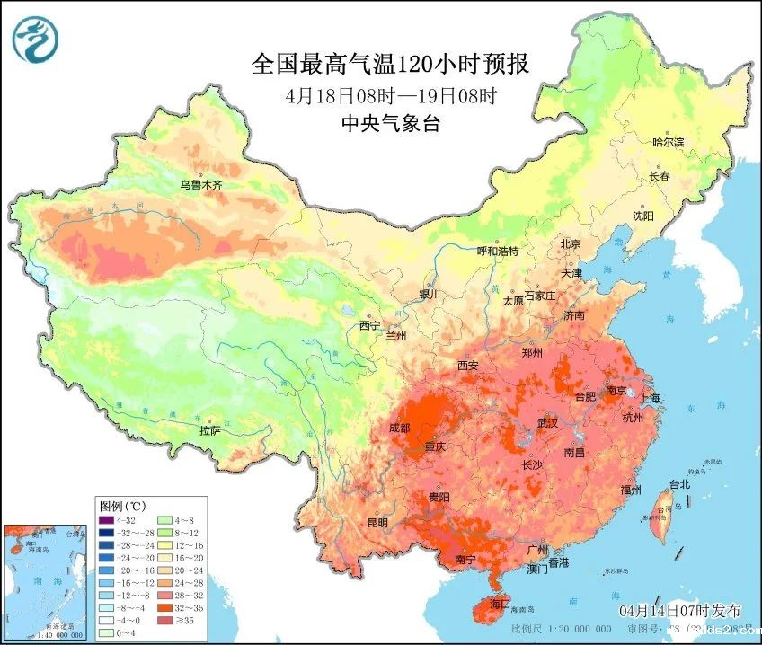 14日至18日安徽省气温逐渐回升,18日全省大部分地区最高气温可达30℃左右。