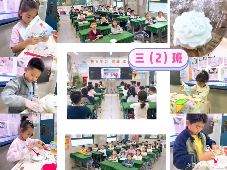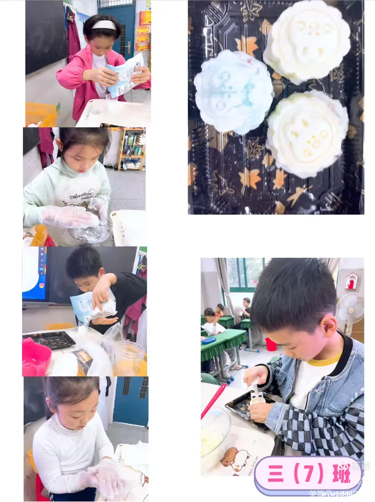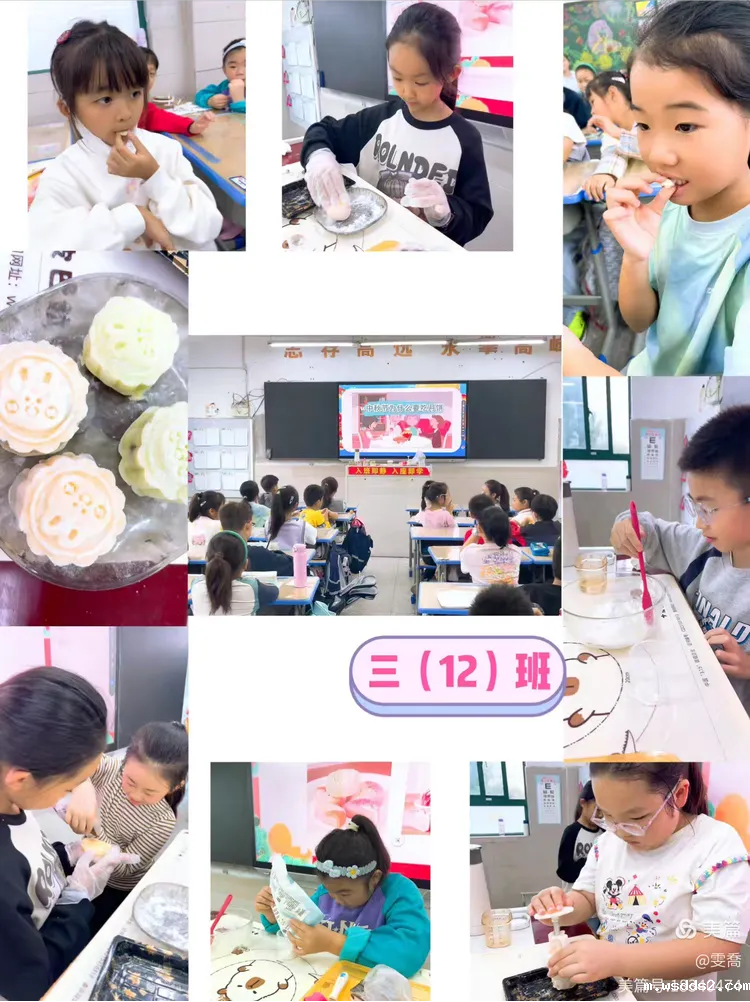 第一课时以“月饼中的文化与传承”为主题,教师引导学生从生活实际出发,探究中秋节吃月饼的习俗渊源,了解淮南地方特色月饼如“糖馍”“大救驾”的文化背景。课程还拓展至非遗文化层面,介绍稻香村苏式月饼、安琪广式月饼等作为非物质文化遗产的价值,激发学生对传统手工艺的保护与传承意识。通过图片、实物与讲解相结合的方式,学生不仅获取了知识,更在文化情境中建立起对劳动的社会意义与情感认同。
