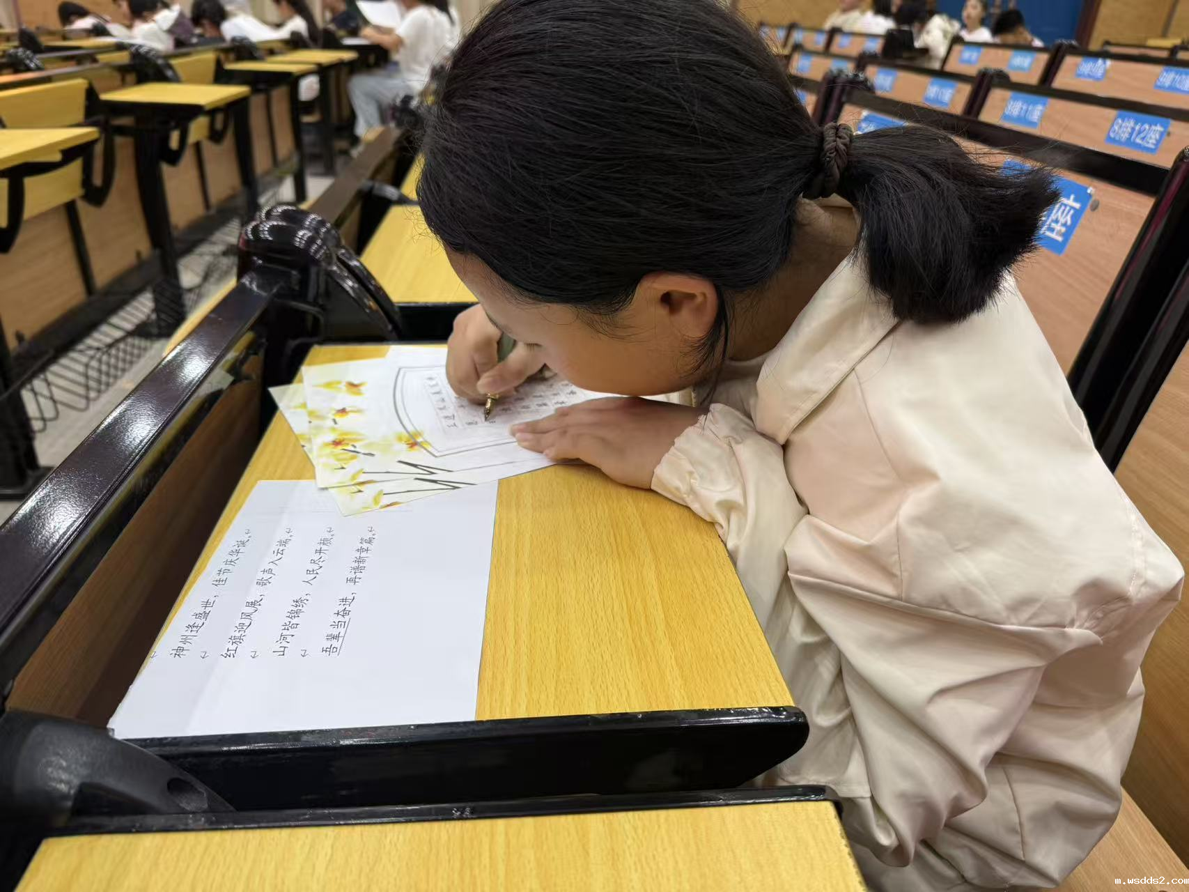 为继承和弘扬中华优秀传统文化,以“融美”理念为核心,将汉字书写之美与文化内涵、学生个性相融合,9月28日下午淮南市洞山中学2025级七年级“融美杯”硬笔书法比赛在报告厅隆重举行。
