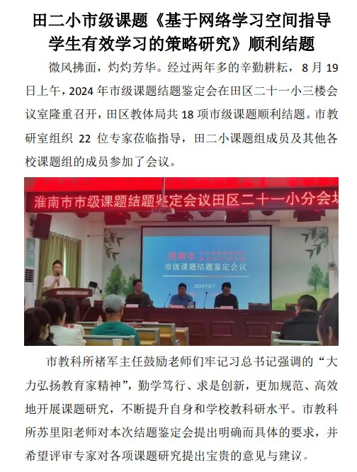 田二小市级课题《基于网络学习空间指导学生有效学习的策略研究》顺利结题
