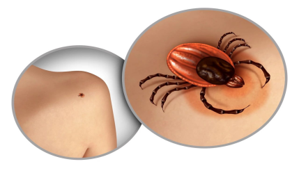 一旦发现有蜱已叮咬皮肤,应尽快将蜱取出,但不可用手直接拍碎、碾碎或抓住蜱饱血部分拔除,不要生拉硬拽以免拽伤皮肤,或将蜱的头部留在皮肤内,宜用小号镊子等工具贴近皮肤夹住蜱口器部拔取,取出后,再用碘酒或酒精做局部消毒处理,并自我观察身体状况两周。一旦出现发热、恶心、腹泻、食欲不振等疑似症状或虫咬伤口体征,应及早就医,并告知医生相关暴露史。