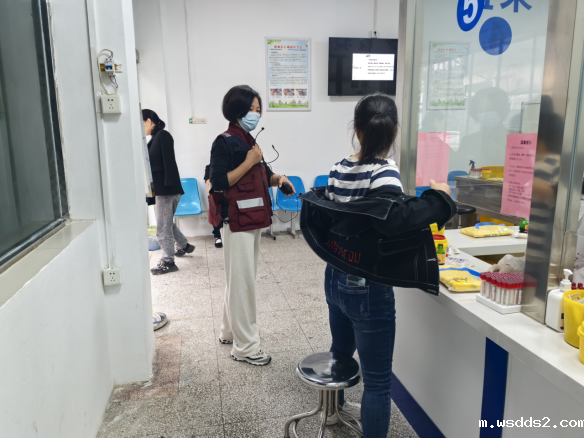 每周二、周四是区疾控中心集中采血、办理健康证的时间,原本在二楼的采血大厅由于楼梯过道狭窄,每次上下楼都会人满为患。考虑有部分年龄较大、孕妇等特殊群体行动不便,为了减少采血高峰期群众上下楼的拥挤,中心将原本在二楼的采血大厅搬到了一楼,同时将原本的4个采血窗口增加到8个,大大地提高了采血效率,减少了群众空腹排队的时间,收到无数群众的点赞。面对空腹状态容易低血糖的群众,工作人员则会为他们递上糖果和白开水,确保群众的采血安全。通过将采血的“战场前移”,与采血工作的“捆绑服务”,为群众办事提供了更加便捷优质的服务体验。