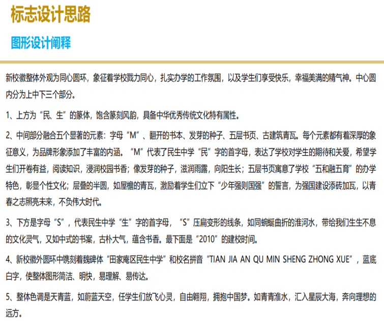 (一)淮南市田家庵区民生中学校徽: