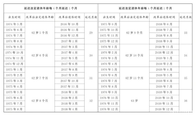 第一条 从2025年1月1日起,男职工和原法定退休年龄为五十五周岁的女职工,法定退休年龄每四个月延迟一个月,分别逐步延迟至六十三周岁和五十八周岁;原法定退休年龄为五十周岁的女职工,法定退休年龄每二个月延迟一个月,逐步延迟至五十五周岁。国家另有规定的,从其规定。