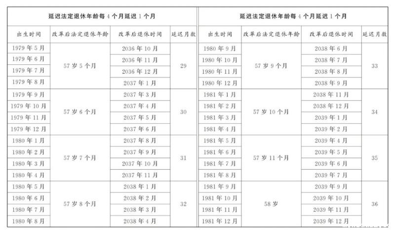 1.男职工延迟法定退休年龄对照表