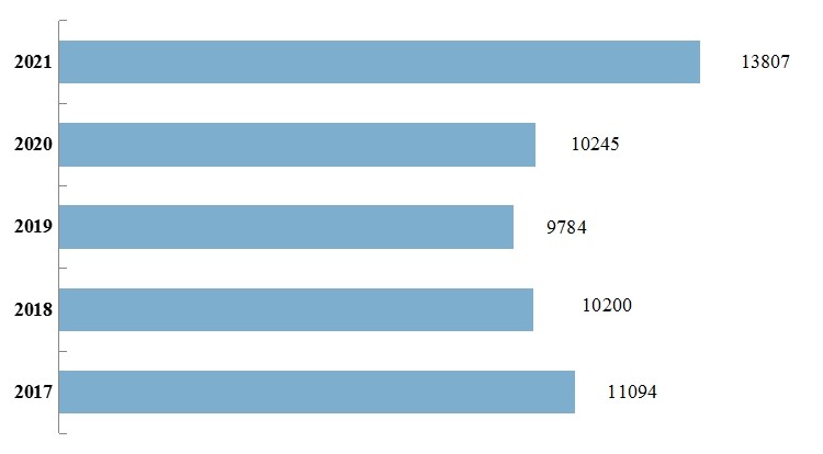 图2 2017-2021年田家庵区新增就业人数(单位:人)