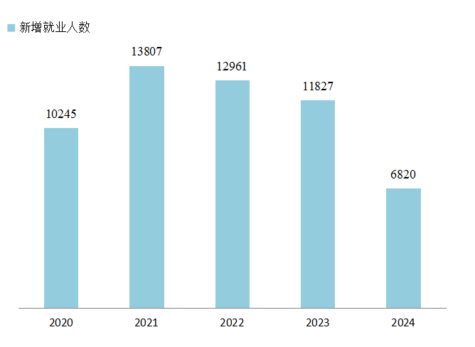 图1 2020-2024年田家庵区新增就业人数(单位:人)