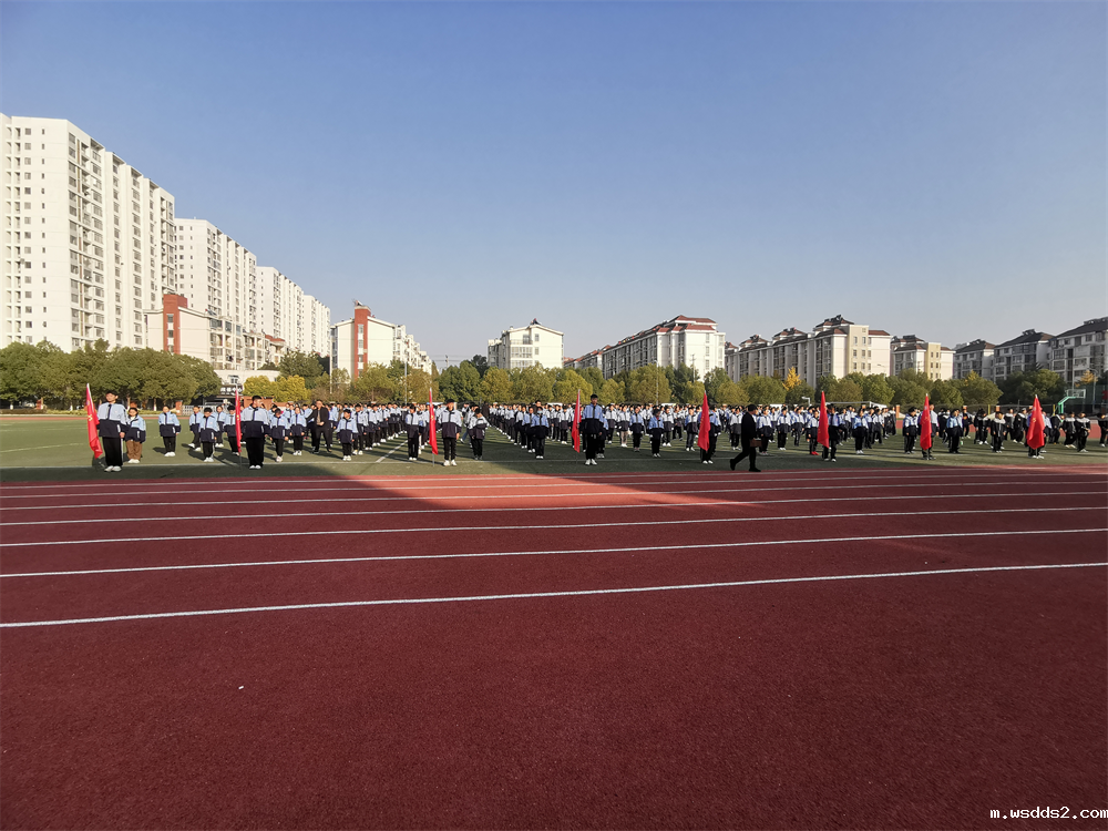 按照比赛流程,首先各班队伍快速、有序地到达操场指定集合地点,统一的着装和整齐的队列彰显出民生学子富有朝气的精神面貌。接着体育组周鹏老师进行比赛动员讲话,比赛正式开始,七年级十个班级依次迈着坚定的步伐向我们走来,他们高喊嘹亮的口号,按照赛前抽签的顺序依次走入赛场。