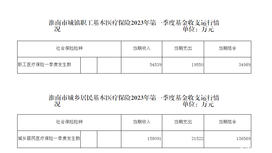 淮南市城镇职工、城乡居民基本医疗保险2023年第一季度基金收支运行情况
