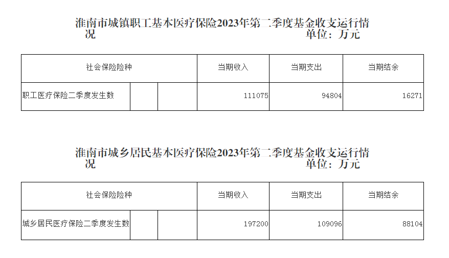 淮南市城镇职工、城乡居民基本医疗保险2023年第二季度基金收支运行情况