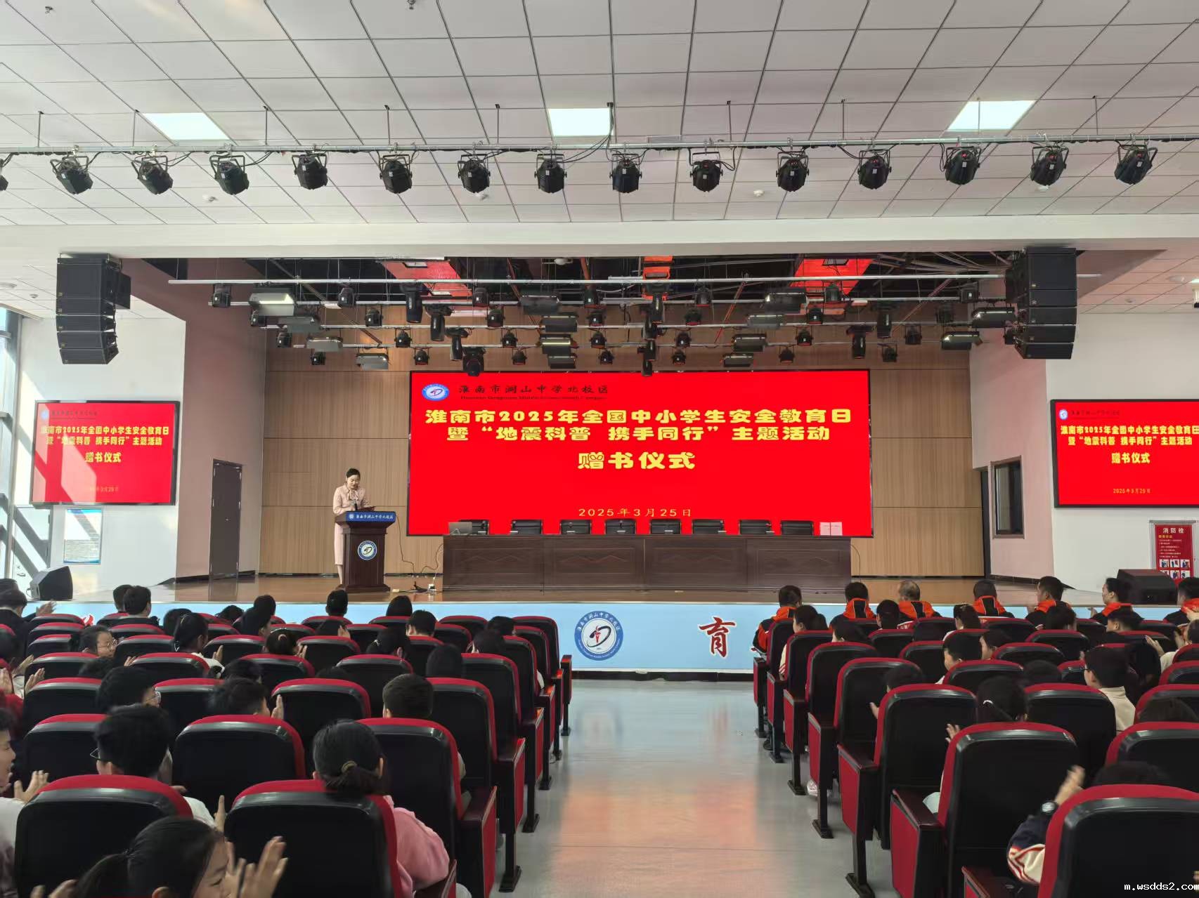 活动中,淮南市地震局局长邓传国向学校捐赠了《地震应急避险手册》《青少年防震减灾科普读本》等图书。这些图书内容包含地震原理、逃生技巧、自救互救等实用知识。校方代表表示,将充分运用这批科普读物,通过主题班会、阅读角等多样化形式,引导学生掌握科学的避险方法,筑牢校园安全文化的根基。
