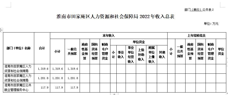 2.淮南市田家庵区人力资源和社会保障局2022年收入总表