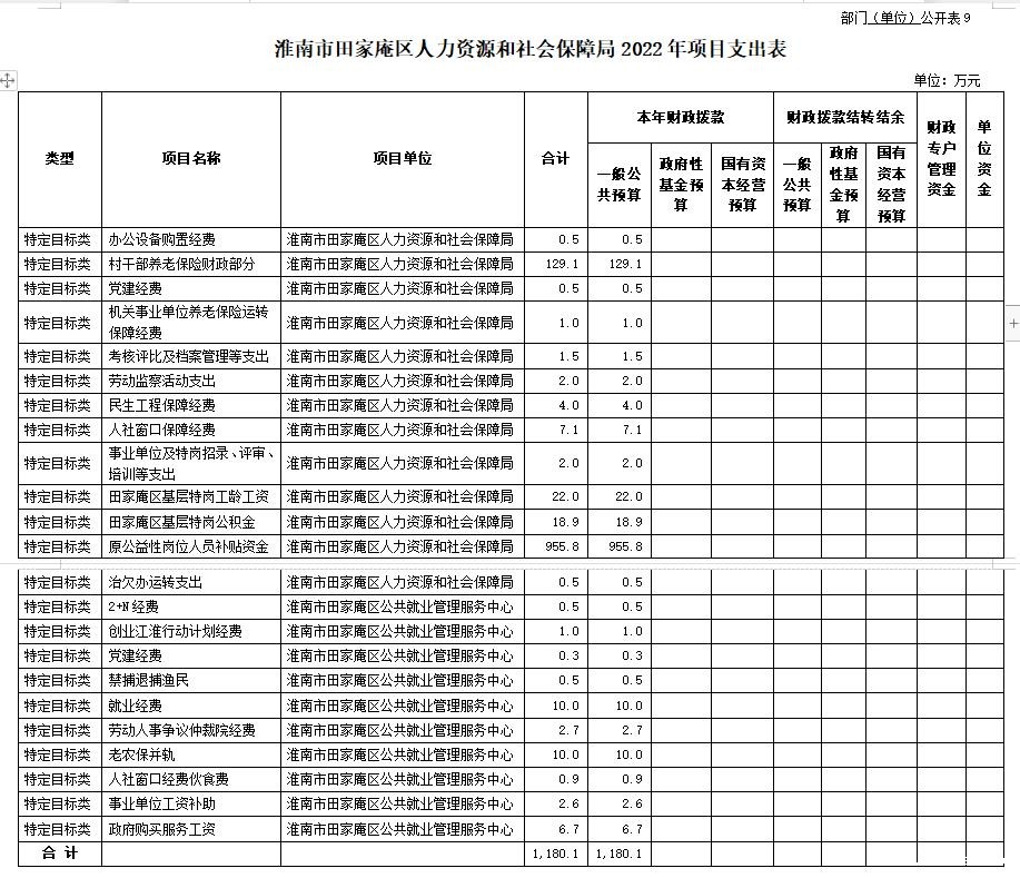 9.淮南市田家庵区人力资源和社会保障局2022年项目支出表