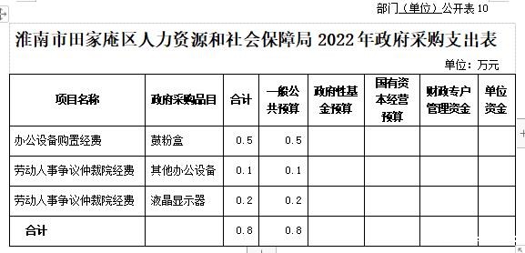 10.淮南市田家庵区人力资源和社会保障局2022年政府采购支出表