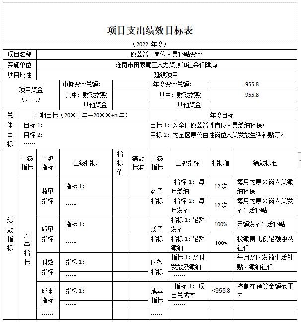 淮南市田家庵区人力资源和社会保障局部门预算公开表(2022).xls
