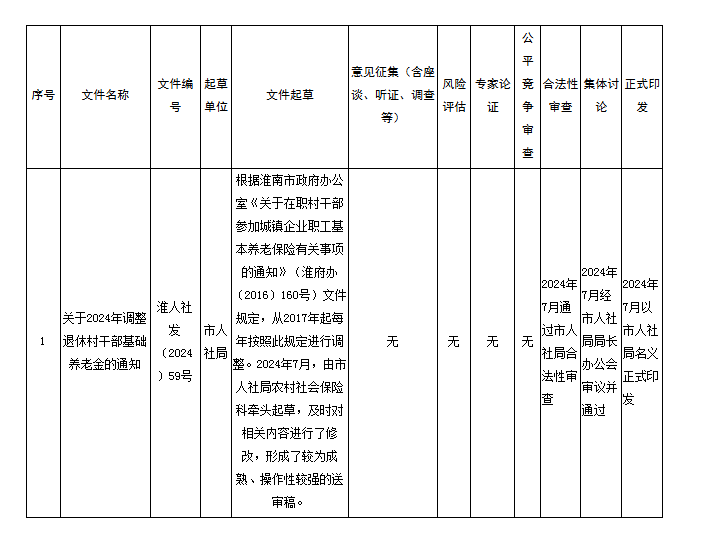淮南市人社局2024年规范性文件公众参与、专家论证、风险评估、集体讨论等程序开展情况汇总表