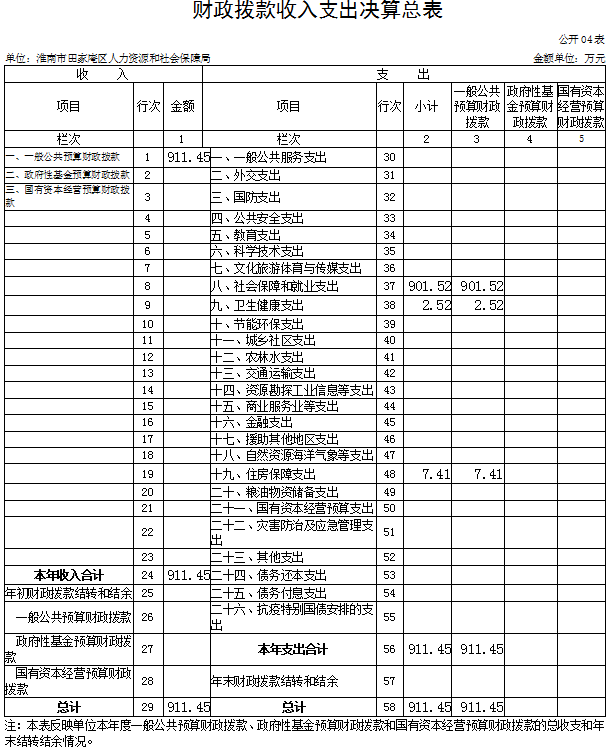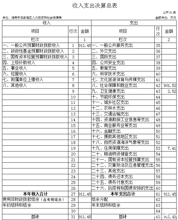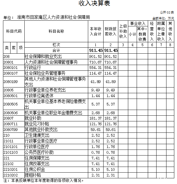 第二部分 淮南市田家庵区人力资源和社会保障局2024年度单位决算表
