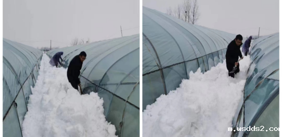 三组人员同时推进,利用铁锨、扫把等工具,对路段两侧路面、农户大棚进行除雪、除冰工作。经过几个小时的努力,成功清理出办公楼到大礼堂主干道路面以及湖滨路商户人行路面,并帮助维强家庭农场做好大棚除雪加温等一系列安全工作。