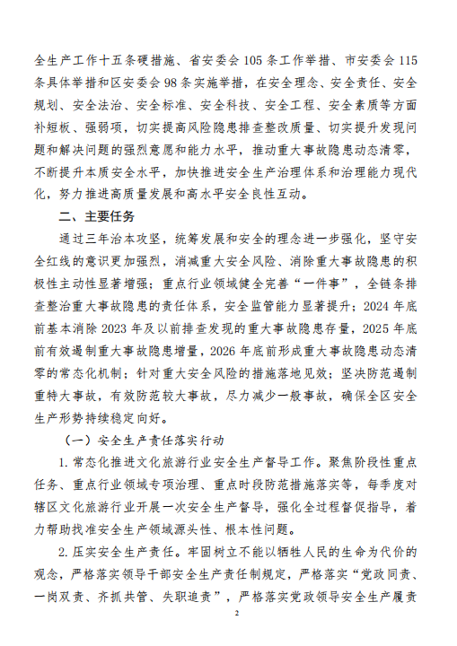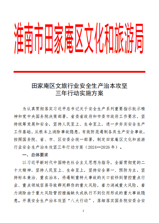 田家庵区文旅行业安全生产治本攻坚三年行动实施方案