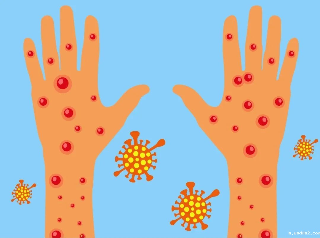 发病后1-3天出现皮疹。首先出现在面部,逐渐蔓延至四肢,手心和脚掌均可出现皮疹。