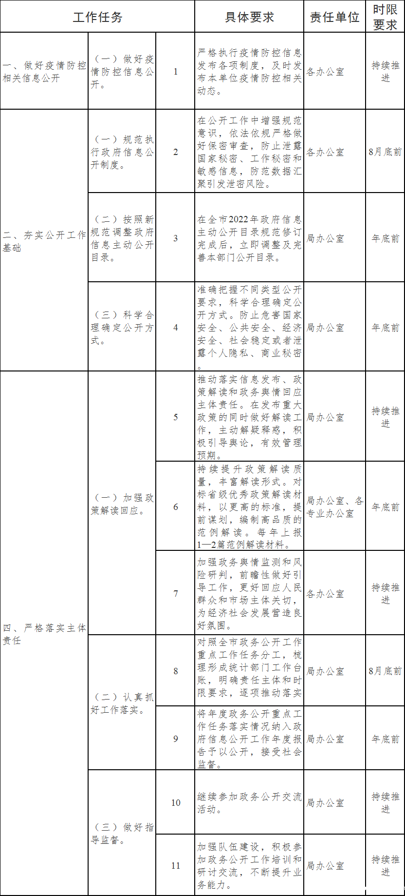 2022年政务公开重点工作任务分工