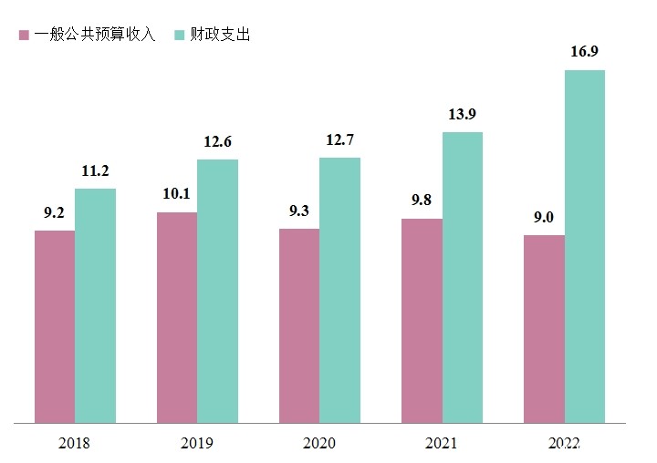 2022年,累计完成一般公共预算收入9.0亿元,下降7.6%,其中:增值税完成4.3亿元,增长10.3%。