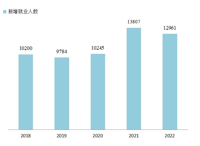 图2 2018-2022年田家庵区新增就业人数(单位:人)