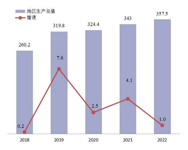 图1 2018-2022年GDP总量及增速(单位:亿元,%)