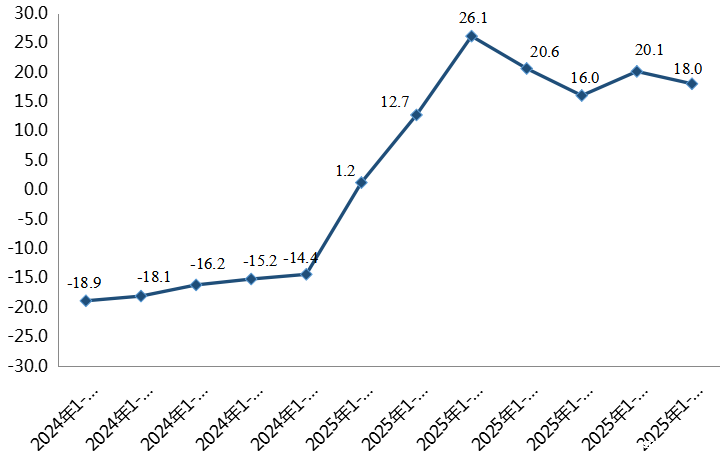三大重点行业全部实现增长。2025年1-8月份,电力、热力、燃气和水的生产和供应业工业增加值同比增长1.4%,拉动全区工业增长0.4个百分点。分具体行业看,电力、热力生产和供应业工业增加值同比增长0.1%;燃气行业工业增加值同比增长8.4%,拉动全区工业增长0.3个百分点,水的生产和供应业工业增加值同比增长1.0%,与上年同期相比降幅扩大5.8个百分点。