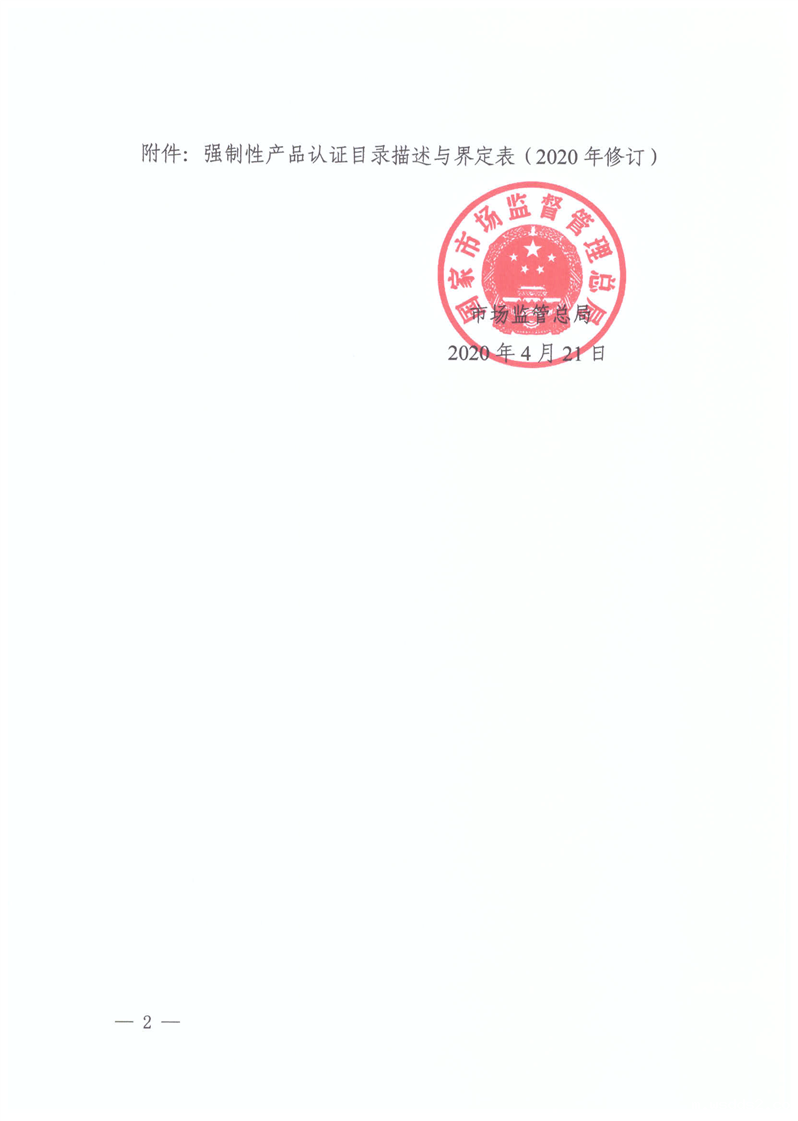 市场监管总局关于优化强制性产品认证目录的公告(2020年第18号)