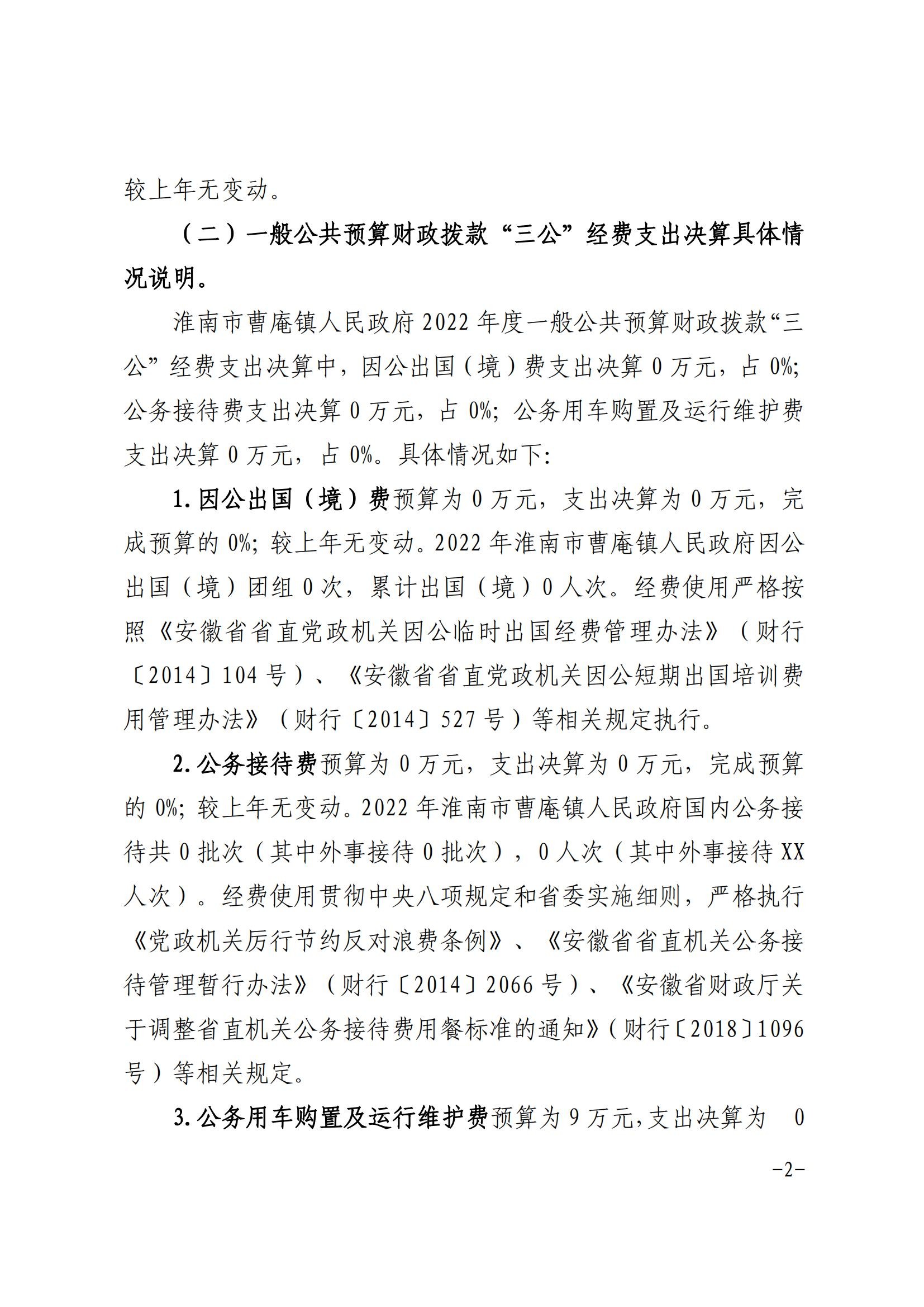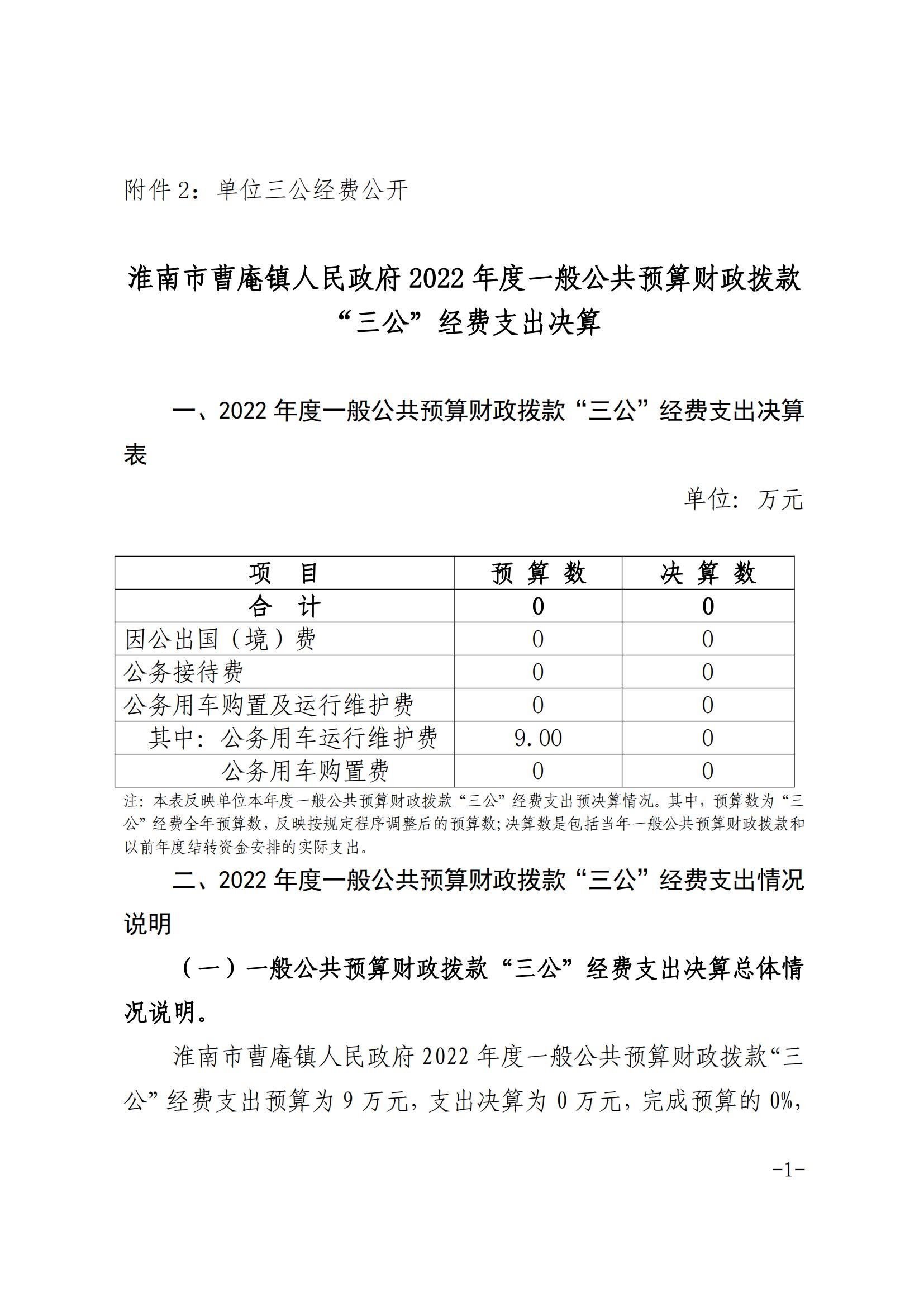【决算】曹庵镇2022年度一般公共预算财政拨款“三公”经费支出决算