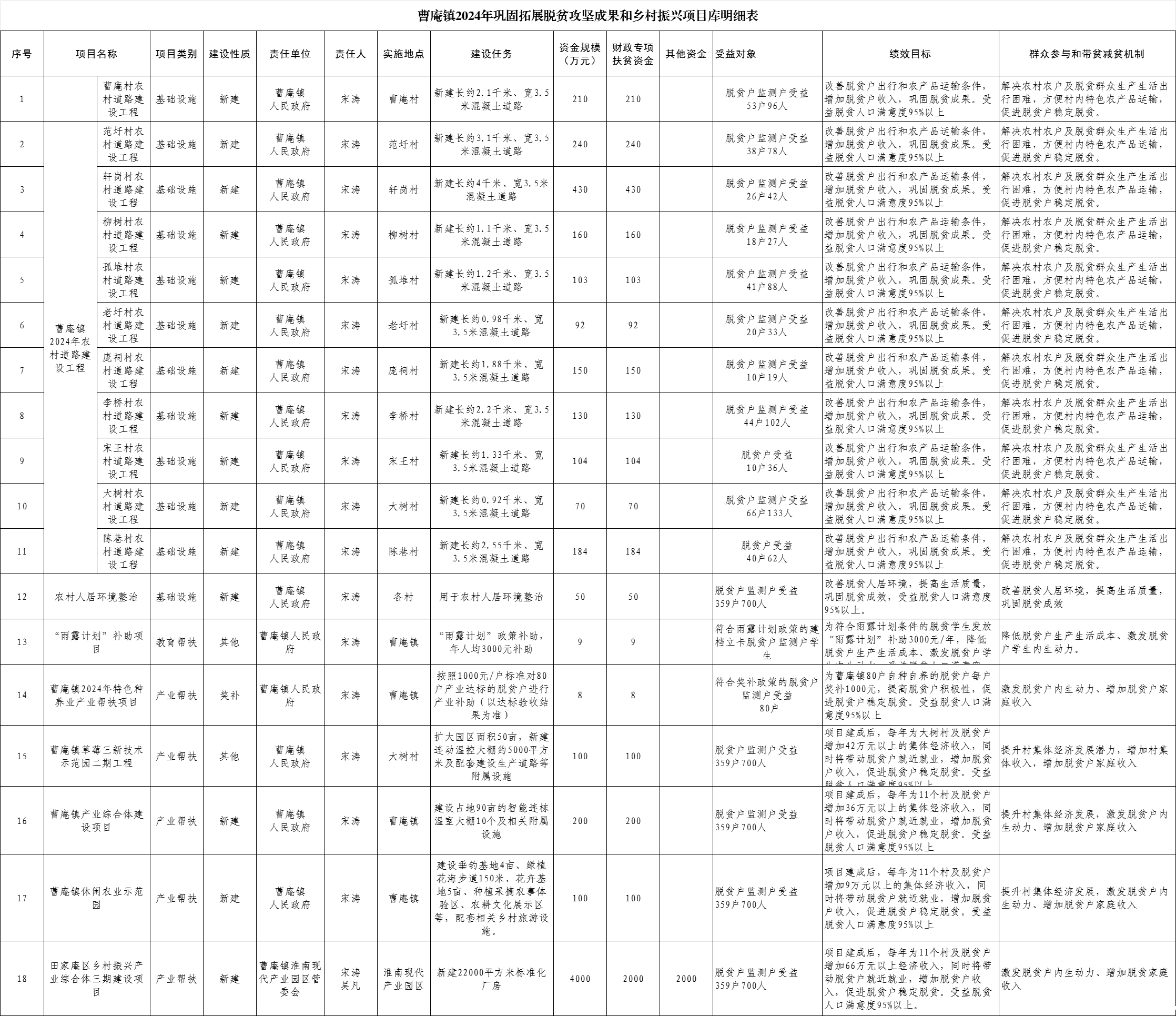 曹庵镇2024年巩固拓展脱贫攻坚成果和乡村振兴项目库明细表