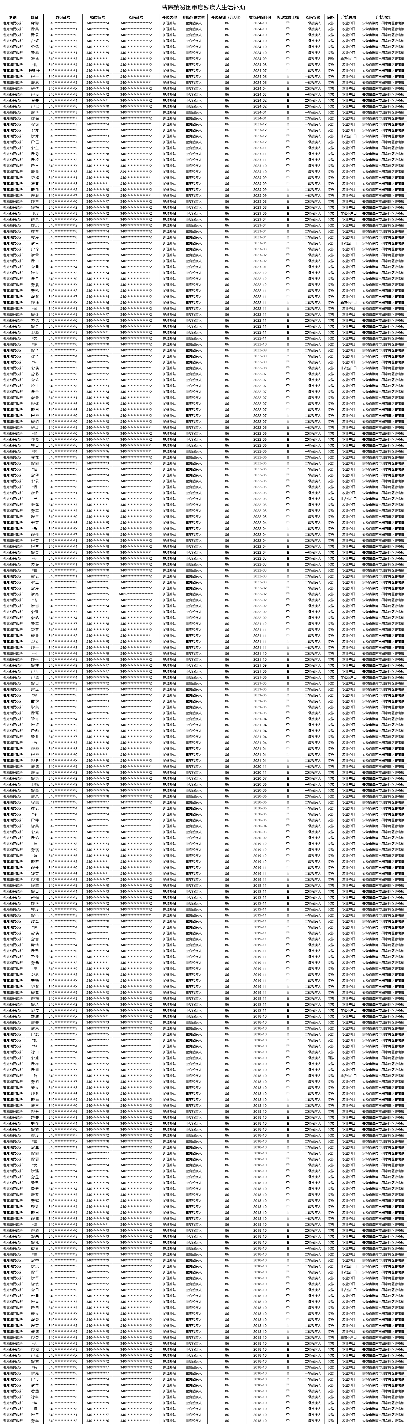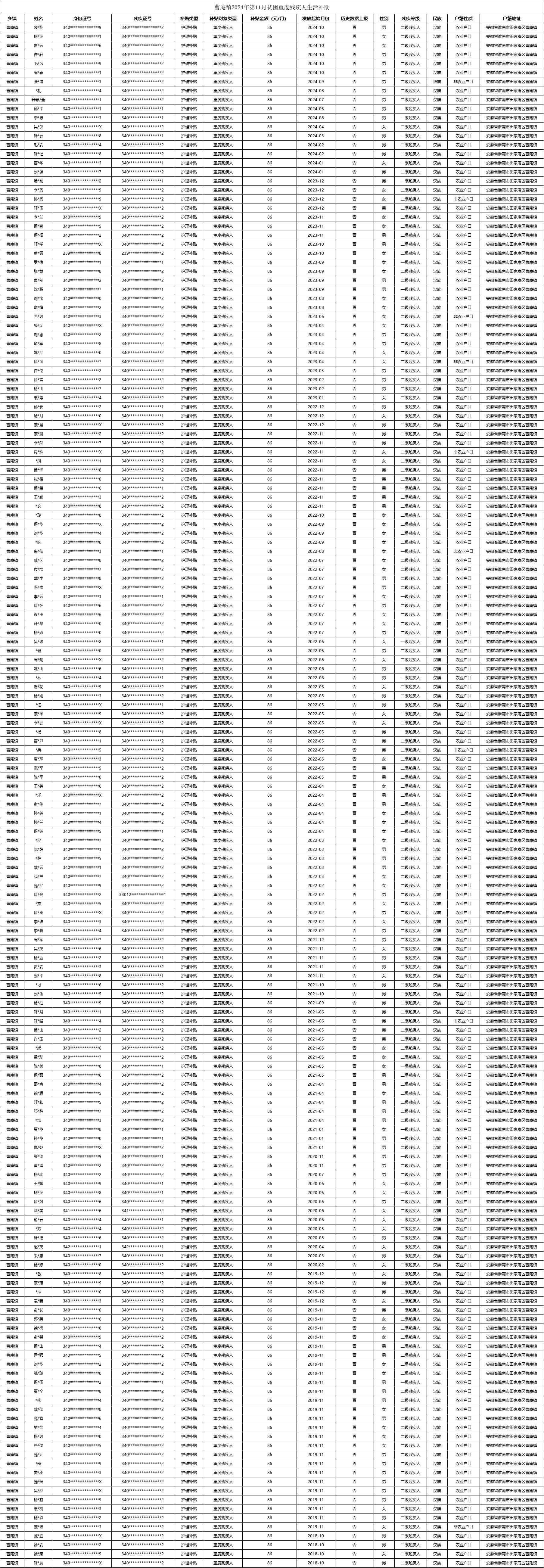 曹庵镇2024年第4季度贫困重度残疾人生活补助