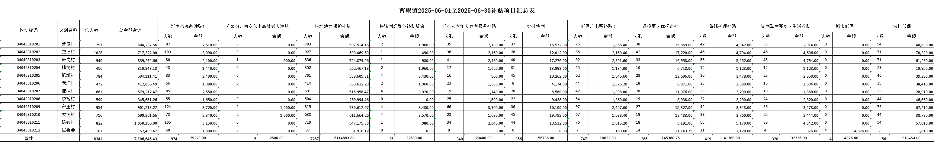 安徽省曹庵镇2025年7月份财政惠民惠农补贴发放结果公示