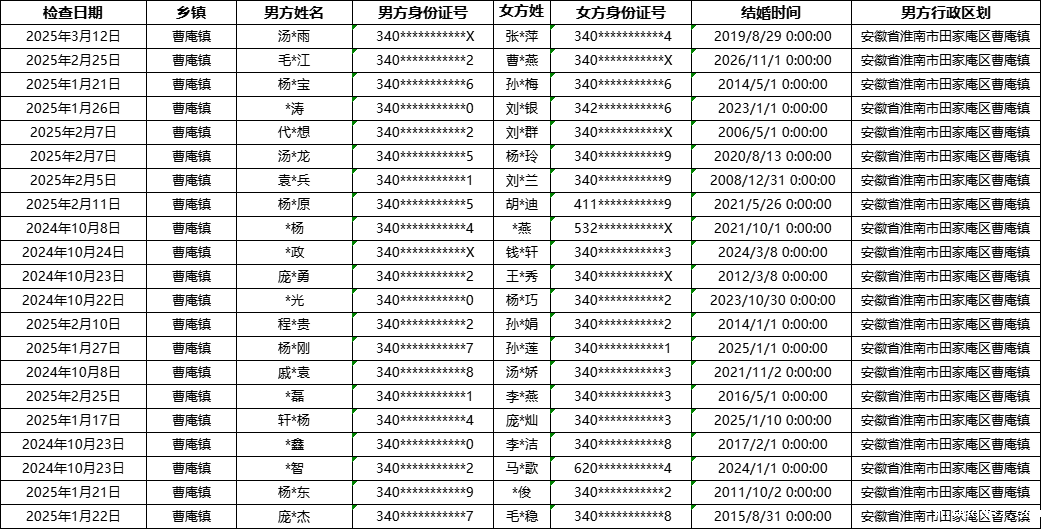 曹庵镇2025年第三季度孕前优生健康检查名单