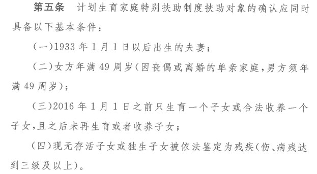 计划生育特殊困难家庭扶助资金的政策与标准