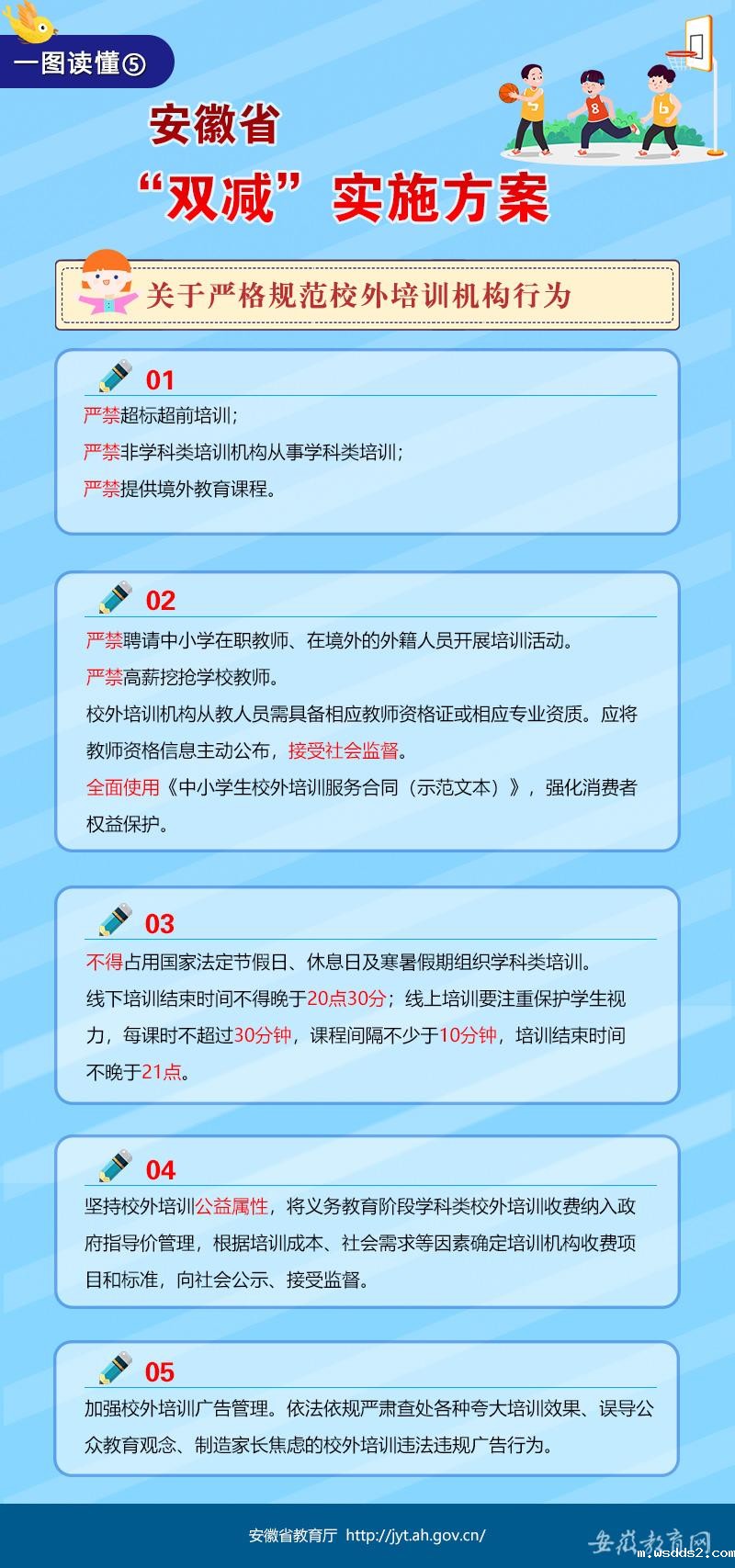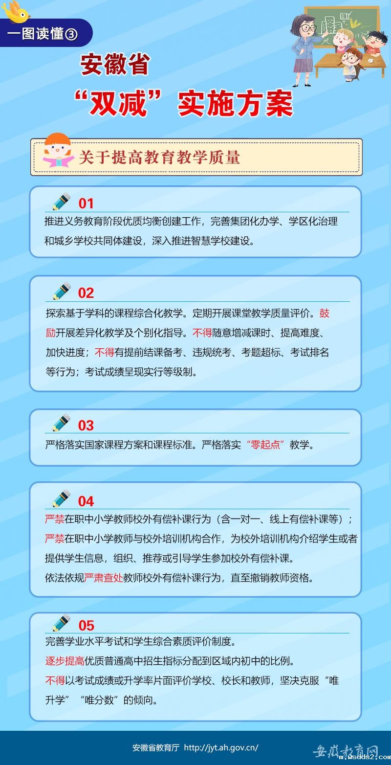 【图片解读】关于《安徽省进一步减轻义务教育阶段学生作业负担和校外培训负担的实施方案》的解读