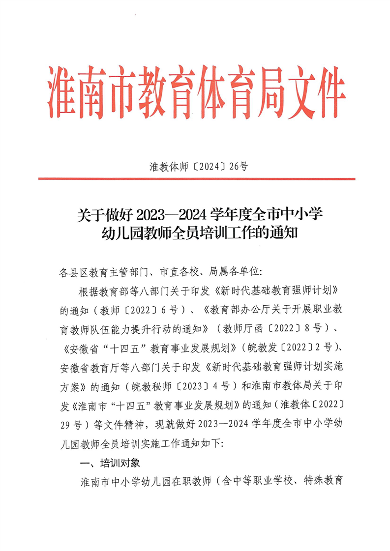 2024年度淮南市幼儿园、小学教师全员集中培训