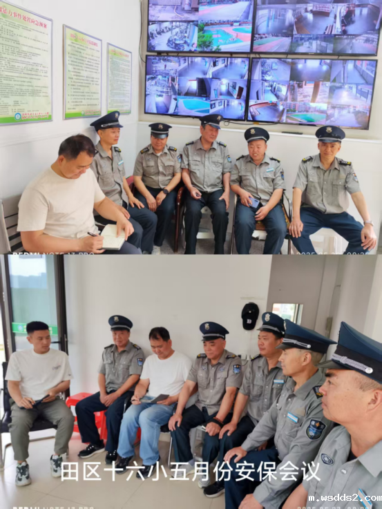 2025年5月27日和28日,田区十六小和保安公司分别在南校区和本校区召开五月份安保会议,校安保负责人及全体保安人员分别参加。会议要求: